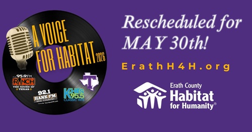 A Voice for Habitat is a singing competition benefiting the Erath County Habitat for Humanity. ECHH works in partnership with people in need to build and renovate decent, affordable housing.