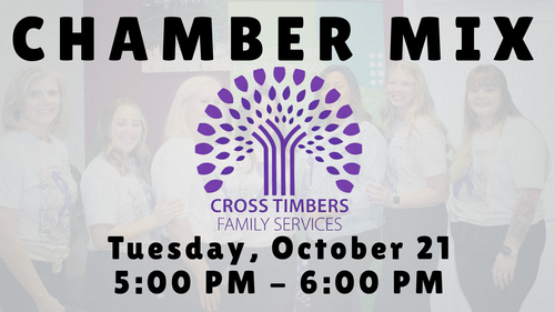 Please join us for a Chamber MIX hosted by Cross Timbers Family Serviceson Tuesday, October 21st from 5:00 PM - 6:00 PM.