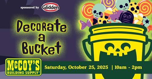 Name: Decorate a Bucket at McCoy'sDate: October 25, 2025Time: 10:00 AM - 2:00 PM CDTWebsite: Click here to learn more about us!Event Description: