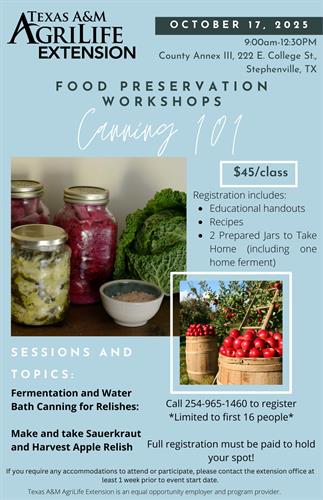 To register, contact the extension office at 254-965-1460 or email andrea.brooks@ag.tamu.edu