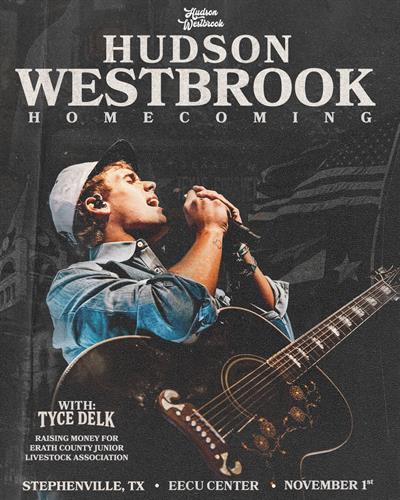 Name: Live Music - Hudson Westbrook HomecomingDate: November 1, 2025Time: 7:00 PM - 10:00 PM CDTWebsite: Click here to purchase your tickets!