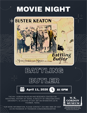 Visit the W. K. Gordon Museum for a free showing of the classic silent comedy "Battling Butler" starring Buster Keaton.
