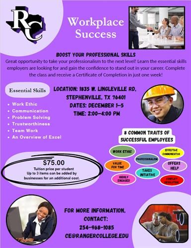 Name: Workplace Success ClassDate: December 1, 2025 - December 5, 2025Website: Click here to follow us on Facebook!